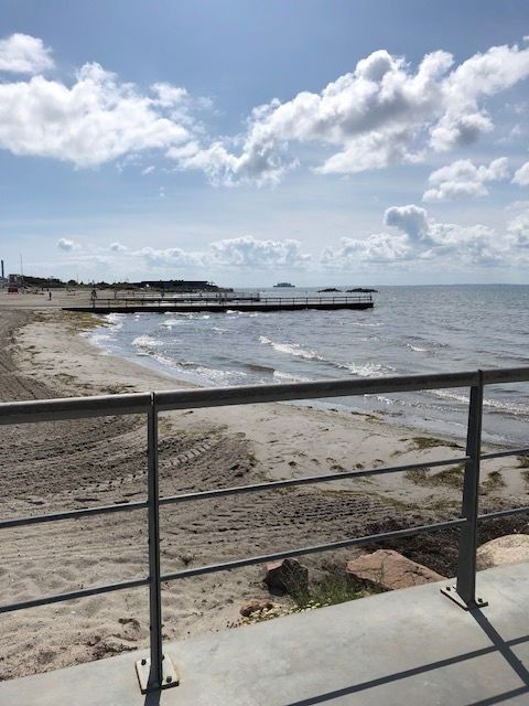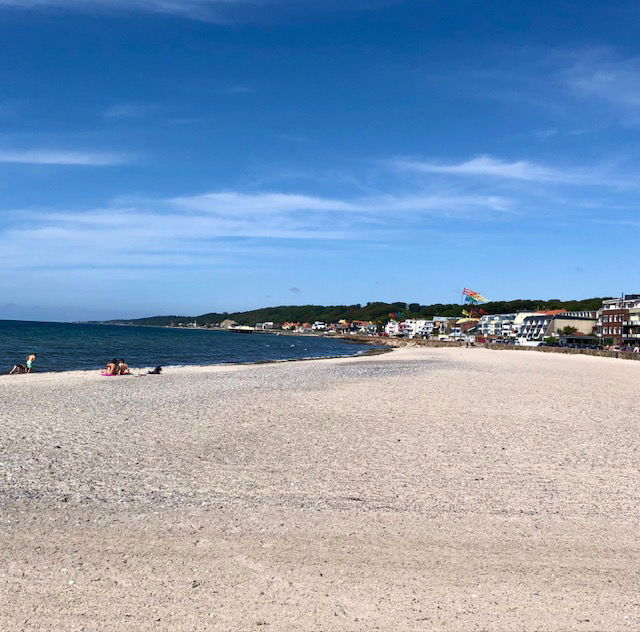A clean and well-maintained beach lines the coastline at Helsingborg. The view above is looking to the north.