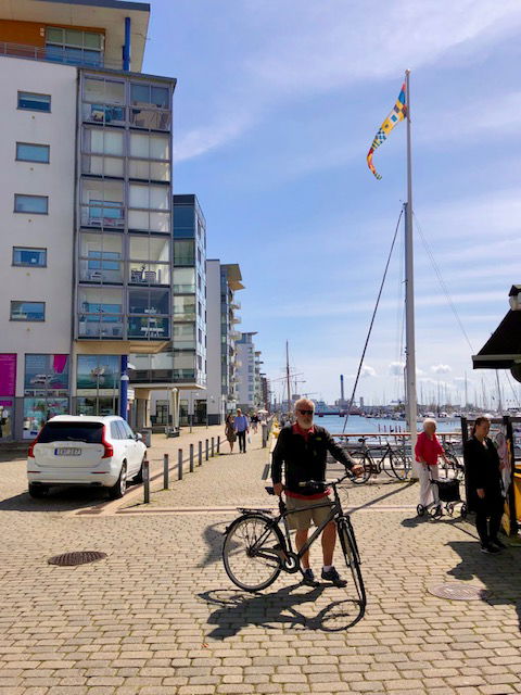 On our way to Falsterbo in southwest Sweden, we stopped in the city of Helsingborg. We parked our motorhome on the street in a residential area and hopped on our bicycles to explore this west coast town.