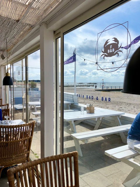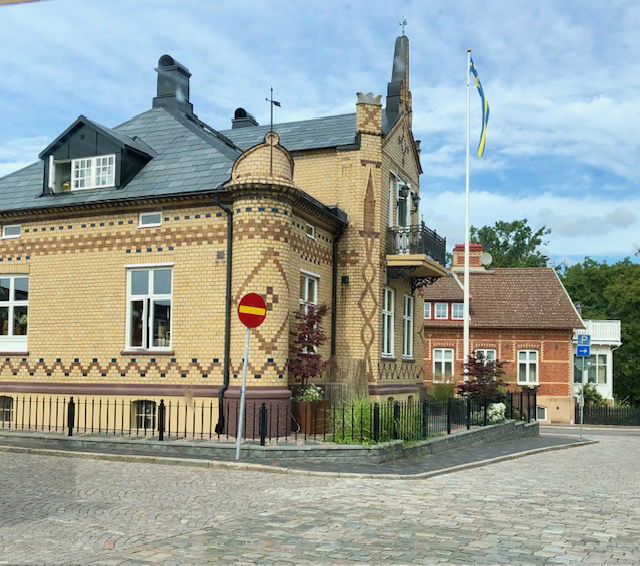We ate lunch at the Fria Bad & Bar, which I expect is a hopping place in the evenings. But the day of our visit, it is was quiet. We sat inside as it was getting quite warm outside. We enjoyed gazing across the water to Denmark. The body of water, called Øresund, is only 2.5 miles across. This is the closest point between Sweden and Denmark.