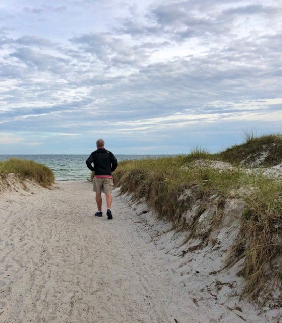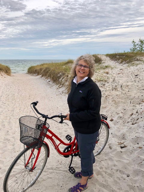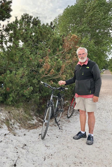 Here Brian has parked his bike in order to walk the rest of the way to the water. The beach faces due south toward Berlin, Germany.