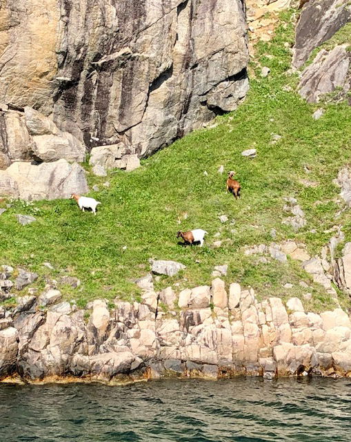 Our vessel stopped to visit these wild goats that are actually quite used to humans.