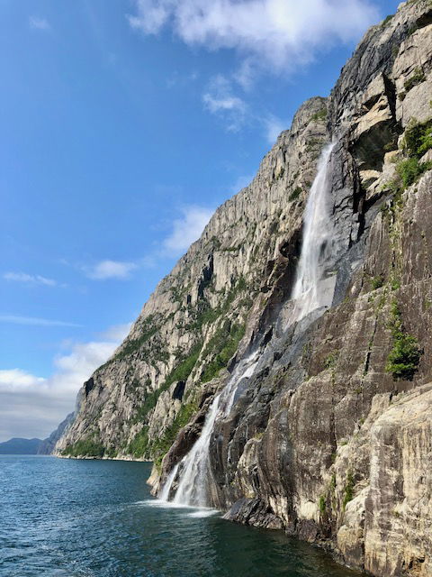A fjord cruise wouldn't be complete without at least one waterfall.
