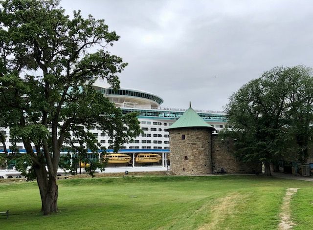 And here's another with the contrast of the ancient fortress on the left and the modern cruise ship on the right. We're getting hungry, it's time to go.