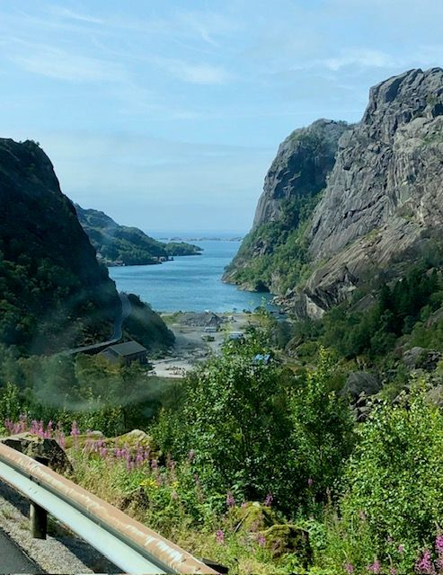 Continuing our journey along the Norwegian coast south from Stavanger, we enjoyed beautiful views from the road.