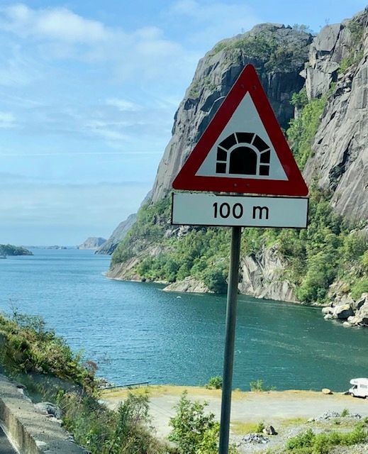 You know a tunnel is coming soon by the sign. I always kept a keen eye out for these signs because just before the entrance, there is usually a sign for the height of the tunnel. I was paranoid that we would damage the roof of our 2.7 meter or 8'10" tall motorhome. My fears were ungrounded as we had no problems navigating through Norway's tunnels.
