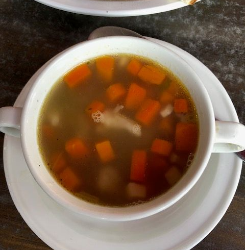 I ordered minestrone soup, which had a clear broth base rather than tomato, and salad. Both were delicious.