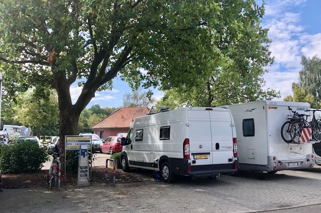 Above is a good example of the advantage to a smaller campervan. It takes less space to park and is not as long as the motorhome parked next to it. This spot is actually a Park4Night place where you just park. No "camping behavior" allowed. It did have restrooms available (the building in the background). Located just outside a gate into the Medieval wall town of Nordlingen, Germany. One of our favorites stops.