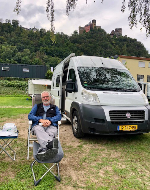 Above Brian is relaxing and enjoying the view of the Rhine River in Germany. We are parked right on the river bank in a nice camping park called Campingplatz Schönburgblick in Oberwesel, Germany. It was conveniently located near two grocery stores and a hardware store. The river traffic provided our late afternoon entertainment.